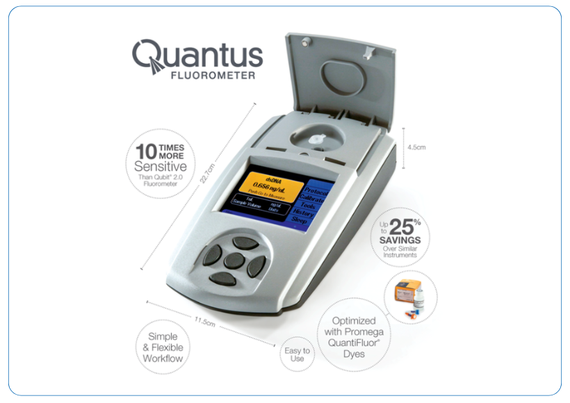 Quantus ™ fluorómetro : , cuantificación de ADN y ARN, sensible simple. Muy sensible , accesible , fluorómetro de un solo tubo Fácil de usar con controles intuitivos. Calcula la concentración de forma automática. Almacena las últimas 20 lecturas . Se puede conectar a un ordenador para transferir datos en tiempo real. Se utiliza […]